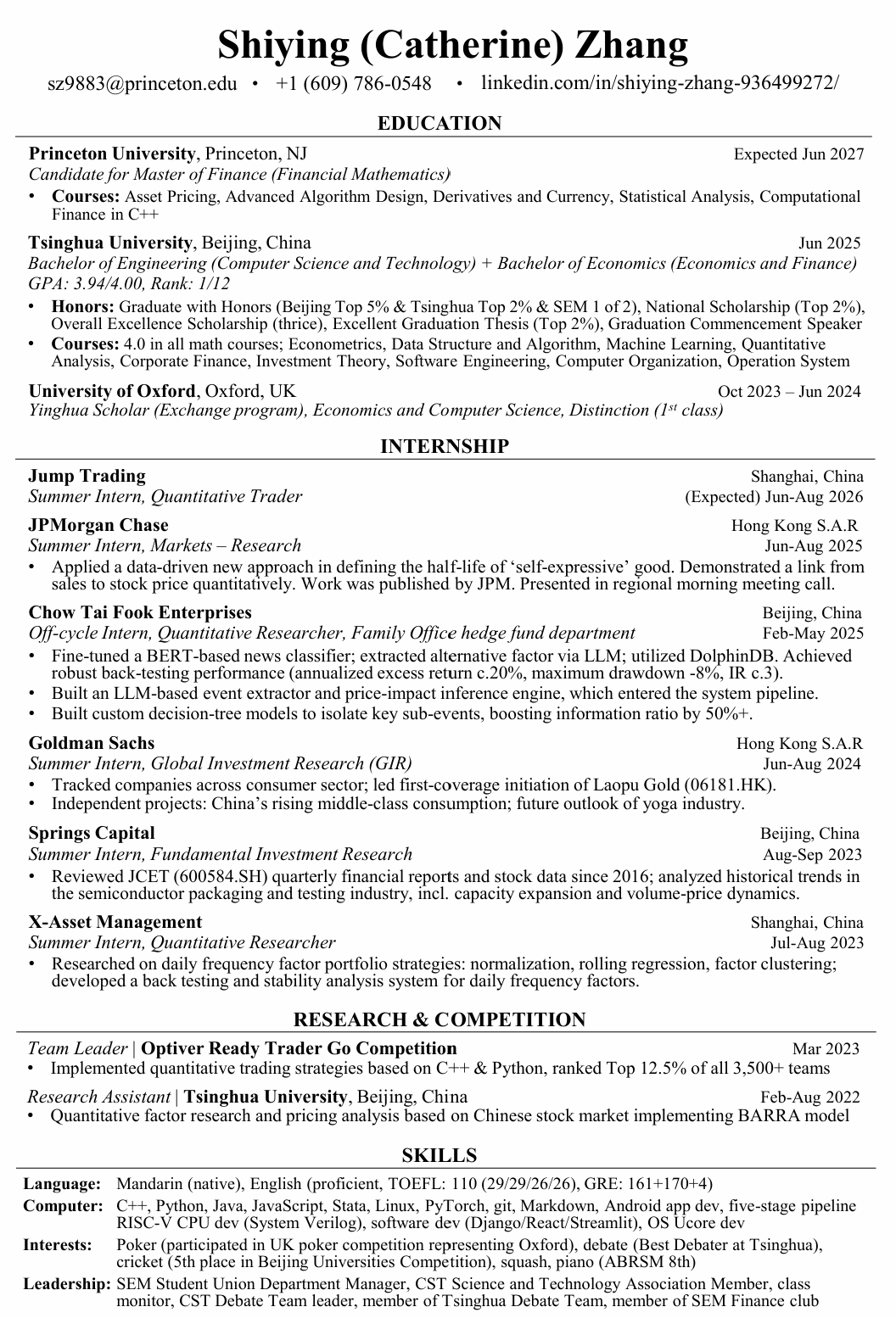 Princeton MFin '27, Tsinghua CS&Fin '25, Oxford Econ '24